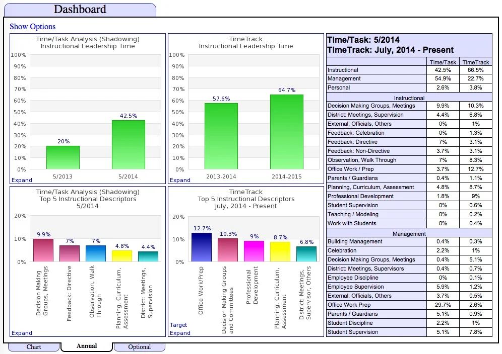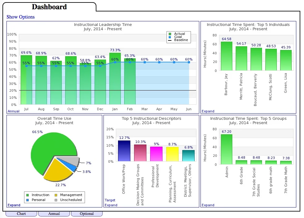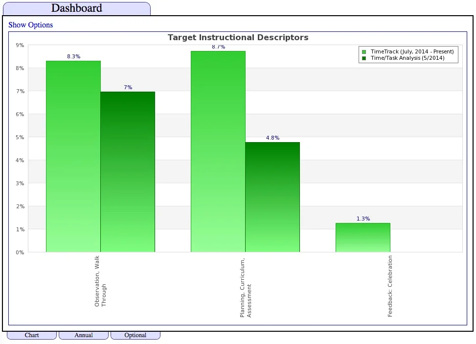 Focus area goals showing increased time spent on instructional processes.