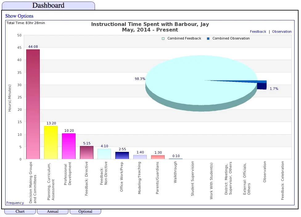 Annual data showing that time spent instructionally focused has doubled year-over-year.